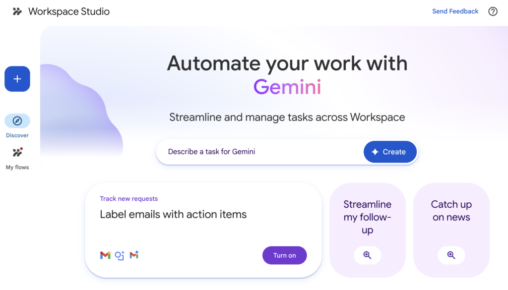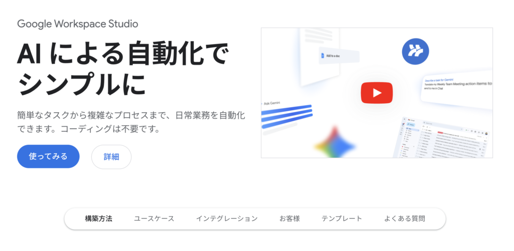 去年からGoogleはGeminiをベースとしたAIエージェントによる業務自動化に力を入れており、その中核を担うプラットフォームとして「Google Workspace Studio」が登場しました。プログラミングの知識がなくても、複数のGoogleアプリを連携させたり、定型業務を自動化したりできるため、ビジネス現場での期待が高まっています。