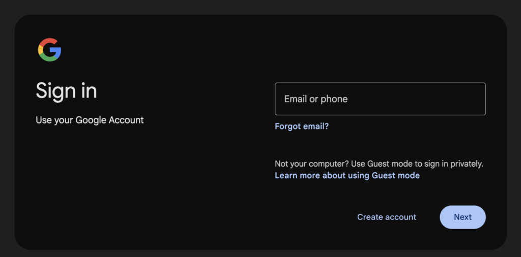 ログイン画面が表示されたら、ビジネス用または教育用のGoogle Workspaceアカウント(メールアドレス)を入力します。