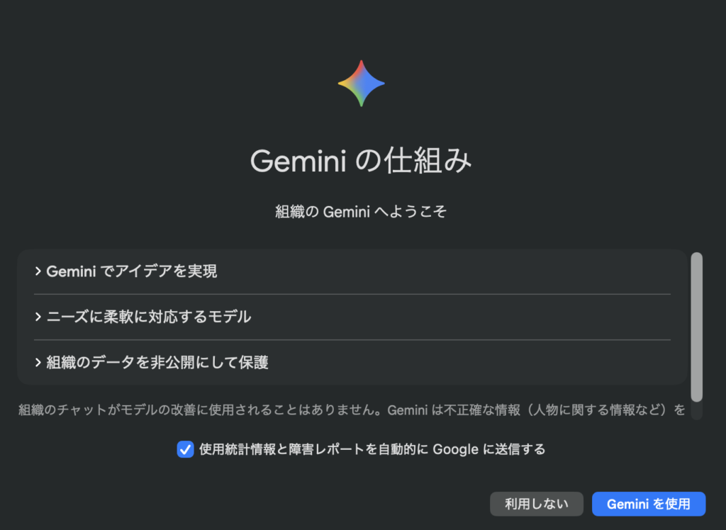 問題なければ、「Geminiを使用」ボタンを押下してください。