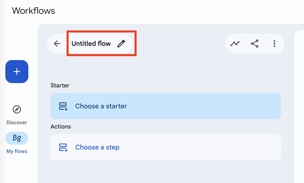 Workspace Flowsプロセスのタイトルを編集し、任意の名称を入力します。